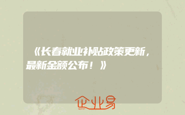 - 《长春就业补贴政策更新,最新金额公布!》
