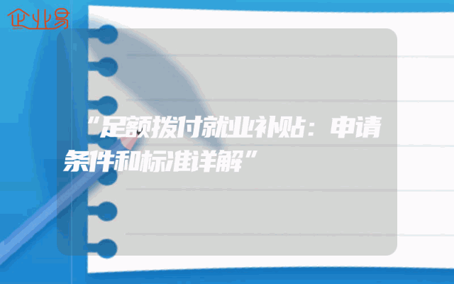 - 足额拨付就业补贴:政策解读与实际操作意义