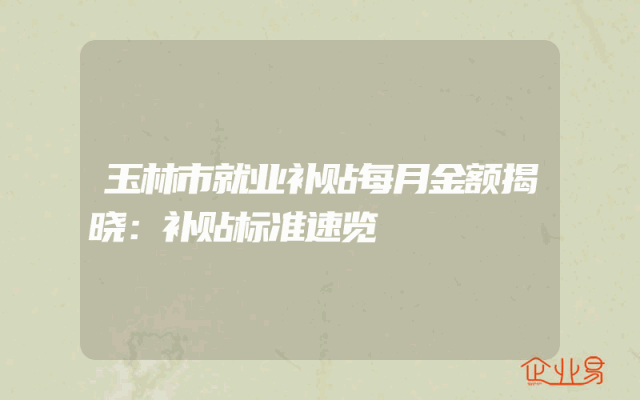 - 玉林市就业补贴每月金额揭晓:补贴标准速览