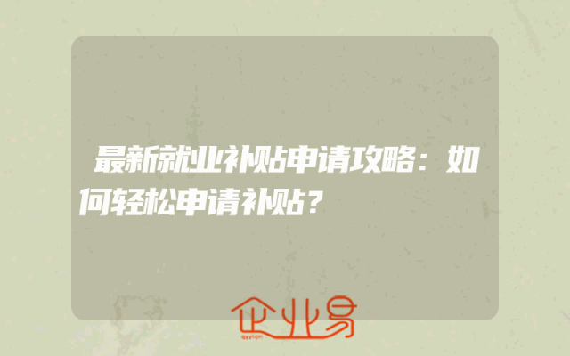 - 最新就业补贴申请攻略:如何轻松申请补贴?
