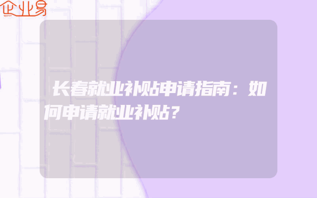 - 长春就业补贴申请指南:如何申请就业补贴?