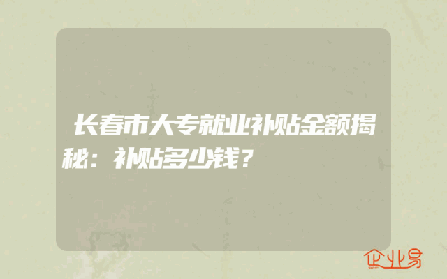 - 长春市大专就业补贴金额揭秘:补贴多少钱?