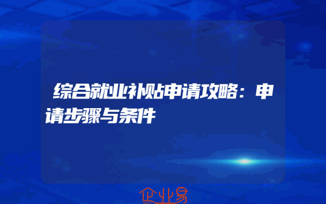 - 综合就业补贴申请攻略:申请步骤与条件解析一、了解就业补贴政策在开始申请综合就业补贴之前,首先需要了解相关的政策。不同地区的政策可能存在差异,因此申请人需要关注所在地区政府或相关部门的公告,确保自己符合申请条件。一般来说,就业补贴政策