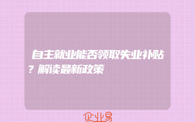 - 自主就业能否领取失业补贴?解读最新政策
