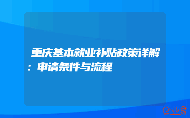 - 重庆基本就业补贴政策详解:申请条件与流程