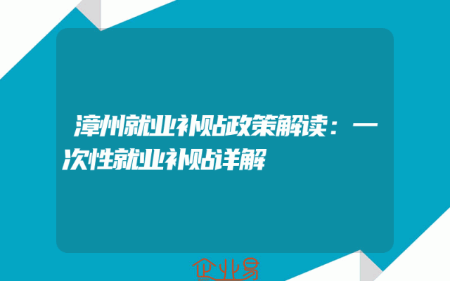 - 漳州就业补贴政策解读:一次性就业补贴详解