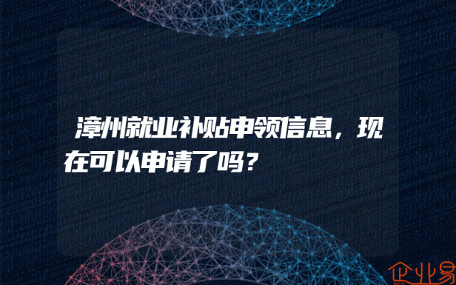 - 漳州就业补贴申领信息,现在可以申请了吗?