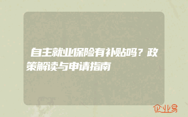 - 自主就业保险有补贴吗?政策解读与申请指南