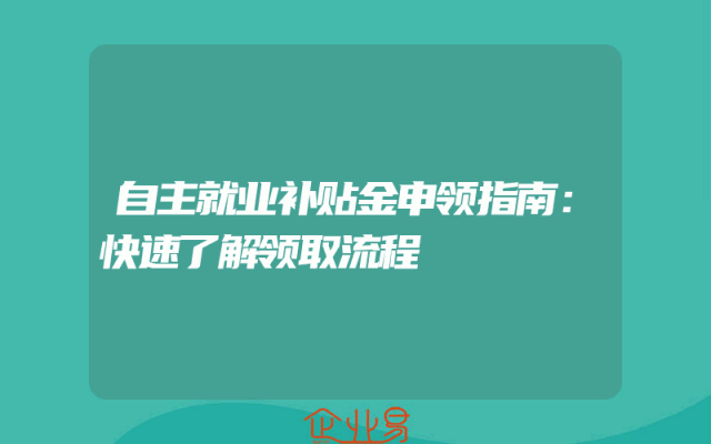 - 自主就业补贴金申领指南:快速了解领取流程一、补贴政策概述随着我国就业政策的不断完善,对于自主就业的个体,国家推出了一系列的补贴政策以鼓励与支持。自主就业补贴金是其中之一,为那些选择自主就业路径的人们提供了一定的经济支持。此补贴金的发放,旨在