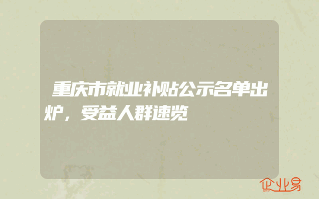 - 重庆市就业补贴公示名单出炉,受益人群速览
