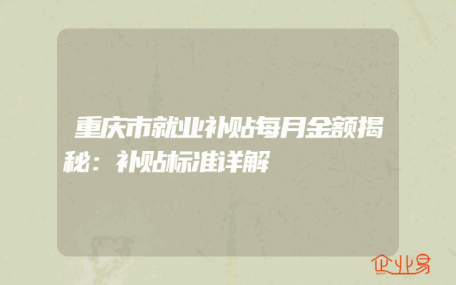 - 重庆市就业补贴每月金额揭秘:补贴标准详解