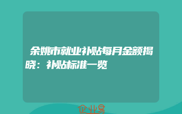 - 余姚市就业补贴每月金额揭晓:补贴标准一览