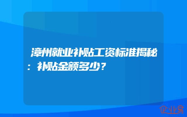 - 漳州就业补贴工资标准揭秘:补贴金额多少?