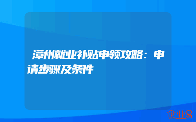 - 漳州就业补贴申领攻略:申请步骤及条件