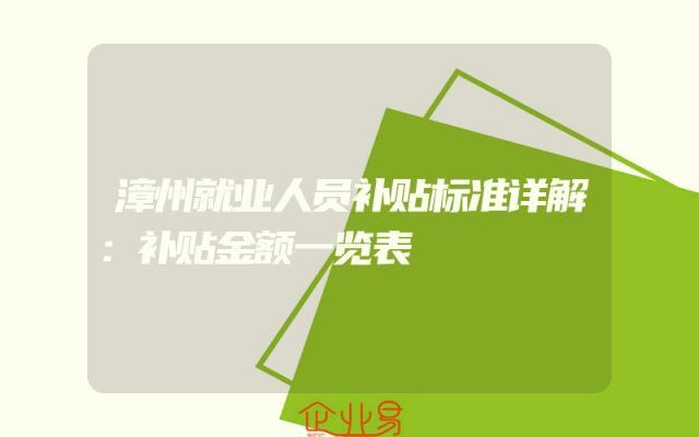 - 漳州就业人员补贴标准详解:补贴金额一览表