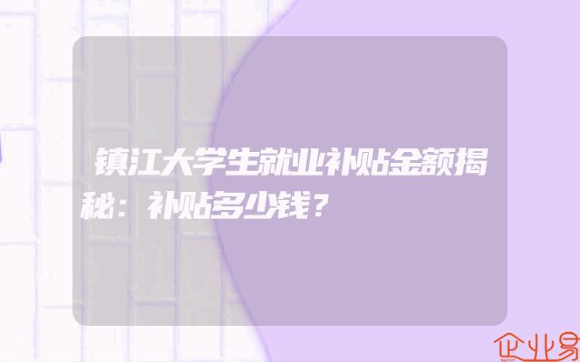 - 镇江大学生就业补贴金额揭秘:补贴多少钱?