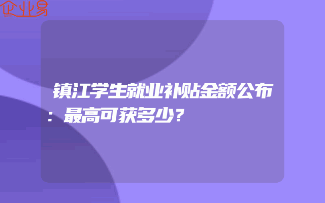 - 镇江学生就业补贴金额公布:最高可获多少?
