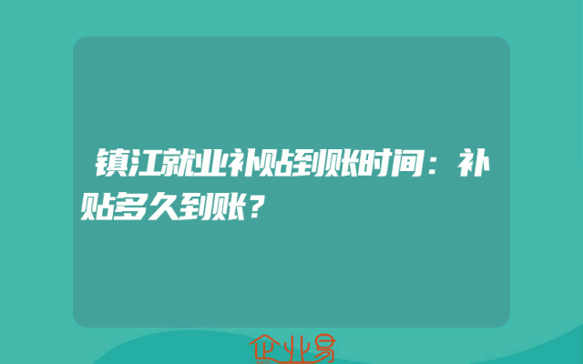 - 镇江就业补贴到账时间揭晓,速览申领攻略!