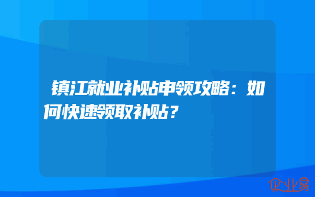 - 镇江就业补贴申领攻略:如何快速领取补贴?