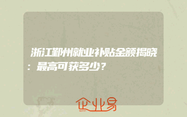 - 浙江鄞州就业补贴金额揭晓:最高可获多少?