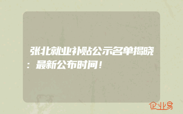 - 张北就业补贴公示名单揭晓:最新公布时间!