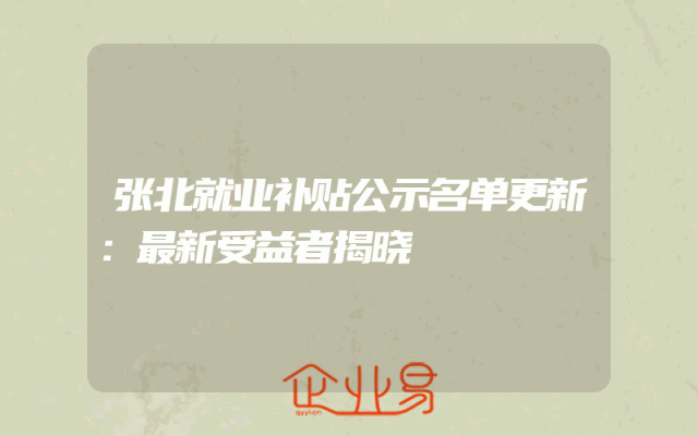 - 张北就业补贴公示名单更新:最新受益者揭晓