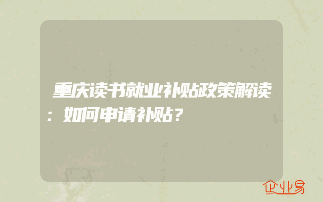 - 重庆读书就业补贴政策解读:如何申请补贴?