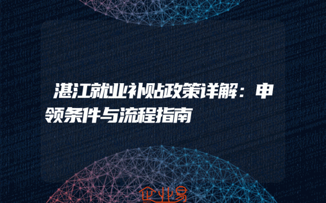 - 湛江就业补贴政策详解:申领条件与流程指南