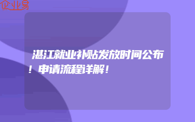 - 湛江就业补贴发放时间公布!申请流程详解!