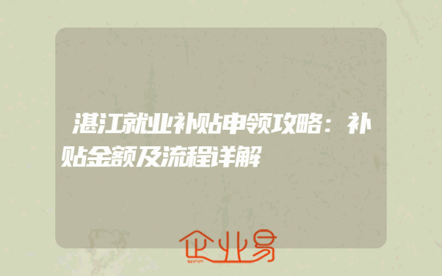 - 湛江就业补贴申领攻略:补贴金额及流程详解