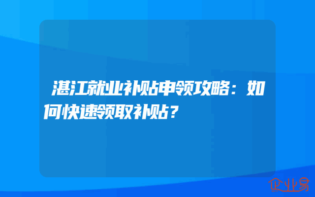 - 湛江就业补贴申领攻略:如何快速领取补贴?