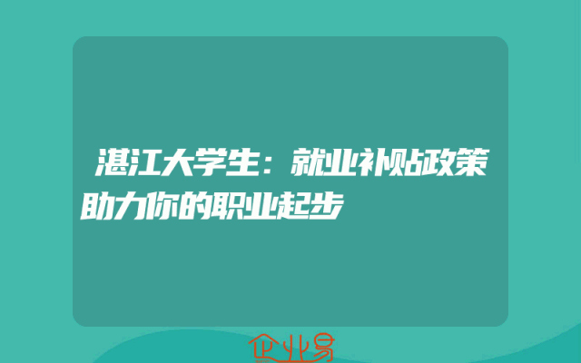 - 湛江大学生:就业补贴政策助力你的职业起步
