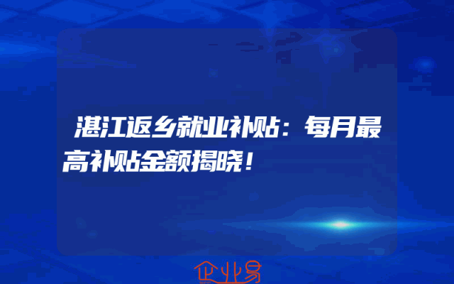 - 湛江返乡就业补贴:每月最高补贴金额揭晓!