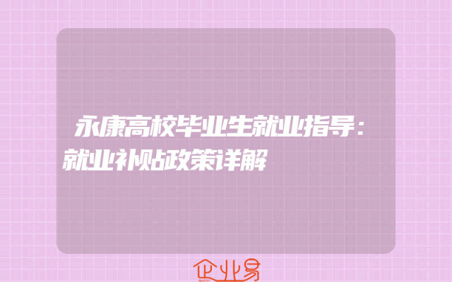 - 永康高校毕业生就业指导:就业补贴政策详解