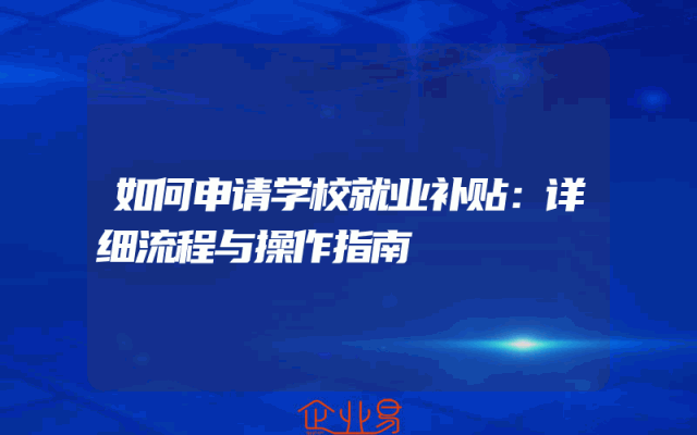 - 如何申请学校就业补贴:详细流程与操作指南