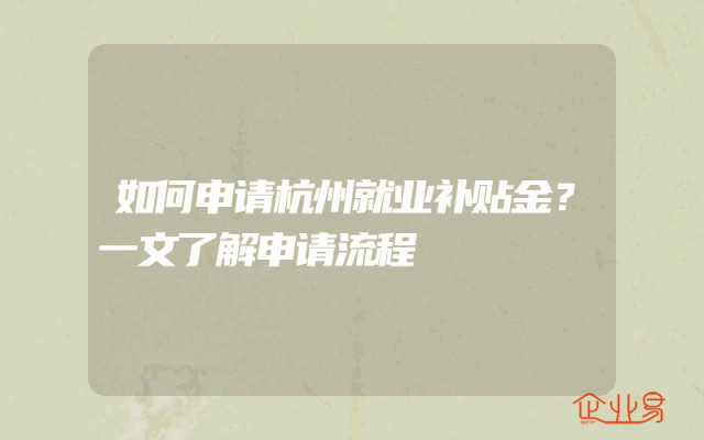 - 如何申请杭州就业补贴金?一文了解申请流程