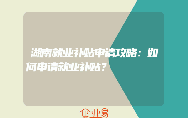 - 湖南就业补贴申请攻略:如何申请就业补贴?