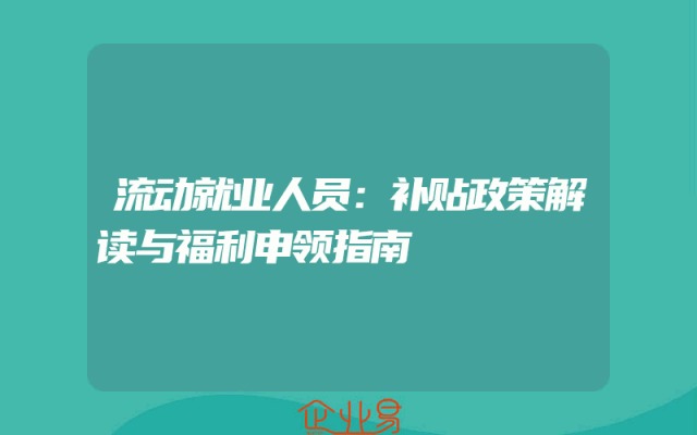 - 流动就业人员:补贴政策解读与福利申领指南一、前言近年来,随着社会经济的发展,越来越多的劳动者选择了灵活就业。这种趋势的发展带来了一系列的政策支持和福利待遇,旨在为流动就业人员提供必要的社会保障和经济援助。本文将针对当前针对流动就业人员的补贴