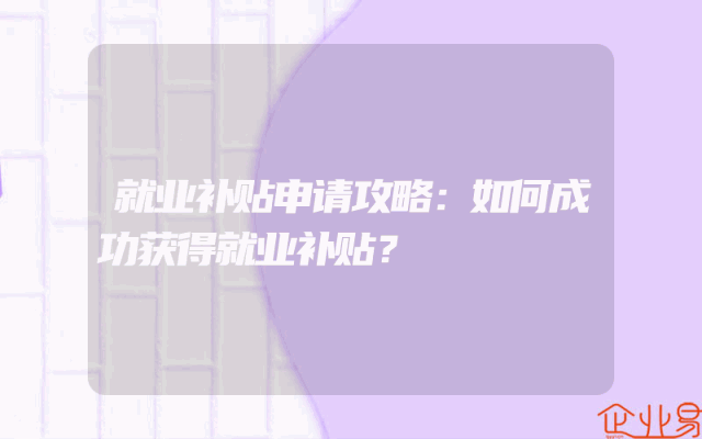 - 就业补贴申请攻略:如何成功获得就业补贴?