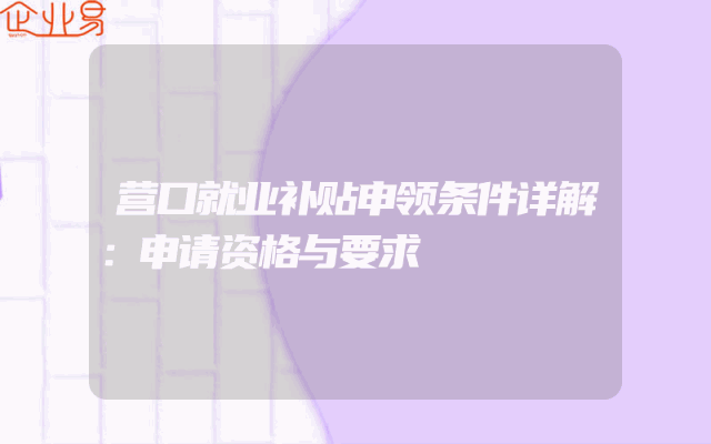 - 营口就业补贴申领条件详解:申请资格与要求