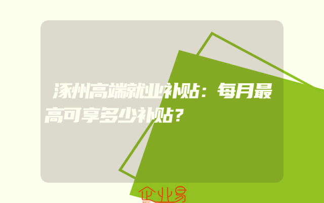 - 涿州高端就业补贴:每月最高可享多少补贴?