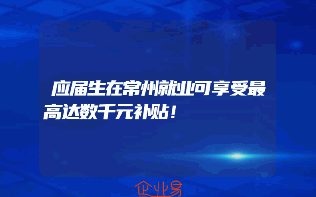- 应届生在常州就业可享受最高达数千元补贴!