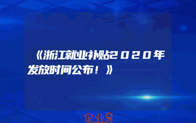 - 《浙江就业补贴2020年发放时间公布!》