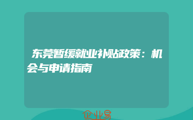 - 东莞暂缓就业补贴政策:机会与申请指南