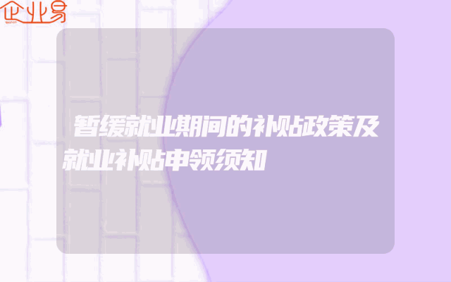 - 暂缓就业期间的补贴政策及就业补贴申领须知
