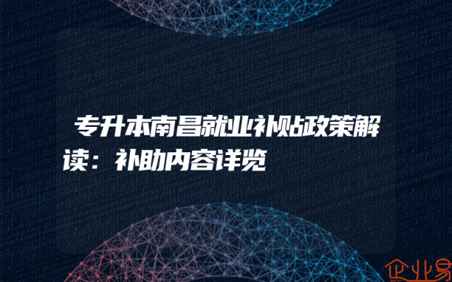 - 专升本南昌就业补贴政策解读:补助内容详览