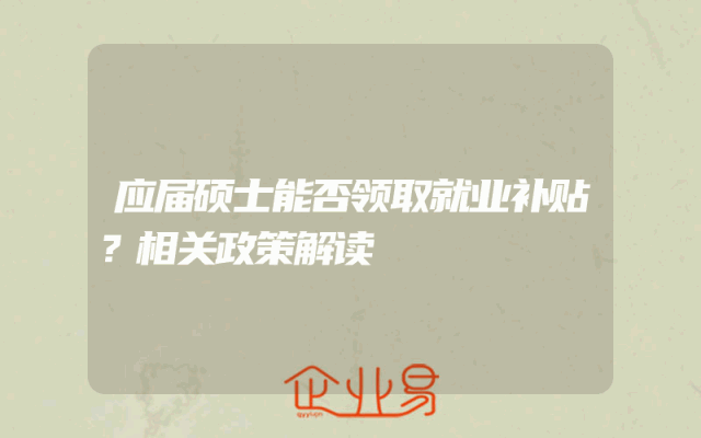 - 应届硕士能否领取就业补贴?相关政策解读