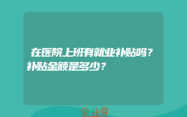 - 在医院上班有就业补贴吗?补贴金额是多少?