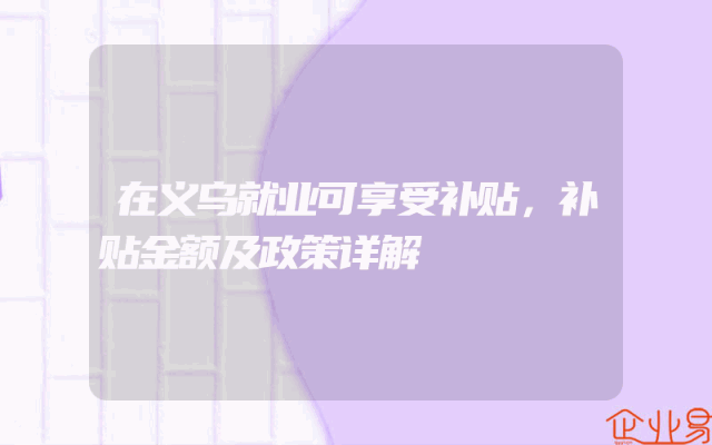- 在义乌就业可享受补贴,补贴金额及政策详解