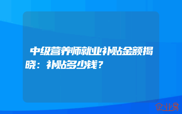 - 中级营养师就业补贴金额揭晓:补贴多少钱?